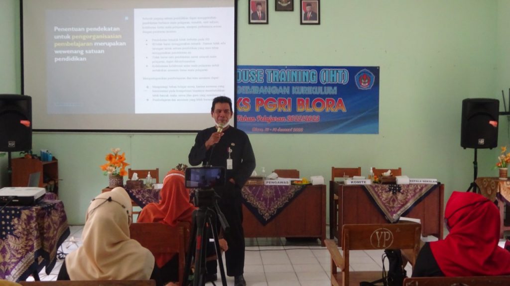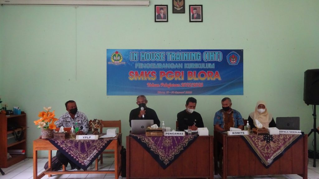 Pada hari Kamis dan Jumat 13 dan 14 Januari 2022 bertempat di Aula SMK PGRI Blora semua guru mengikuti kegiatan in house training pengembangan kurikulum. Pengembangan kurikulum ini dimaksudkan akan diterapkan pada tahun pelajaran 2022/2023 mendatang. Dalam kegiatan tersebut sebagai nara sumber pengawas SMK Gatot Widjajanto, S. Pd., M.Pd. Warsito, S.Pd., M.Pd. Kegiatan berlangsung mulai jam 07.30 sampai dengan 15.30. Kegiatan ini diharapkan semua guru dapat mengasilkan kisi-kisi penyusunan soal, KKM, RPP dan Silabus.